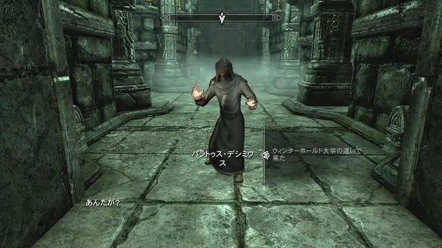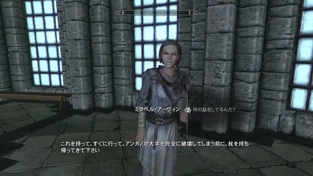 こちらがウインターホールド大学の人間と知ってちょっと躊躇しますが、プロジェクトとやらを見せてくれるそうです。