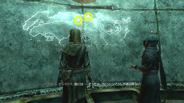 どうやらドゥーマーの遺跡を使って何かしようとしたようですが…手伝ってあげた結果、壁に投影されたのはタムリエルの地図。パラトゥスが考えていたものとは違ったようです。
