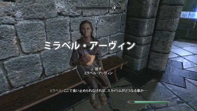 | おまけ | パンを食うミラベル | 動画を作るに当たって、できるだけ珍しい会話を拾って行きたいと思っていました。ここの特殊会話なんて、多分動画を作らなければ一生気付かなかったでしょうね。いつもSkyrimの奥深さには驚かされます。 |