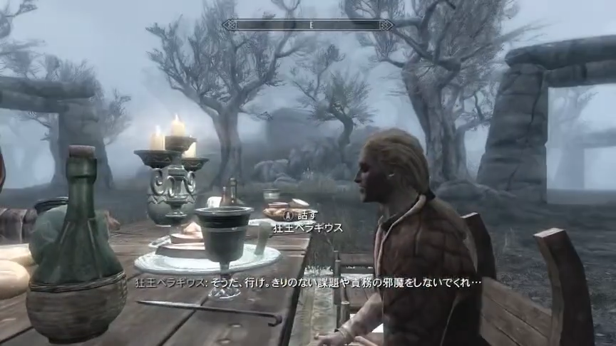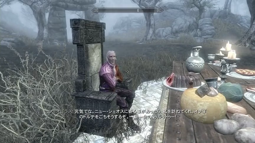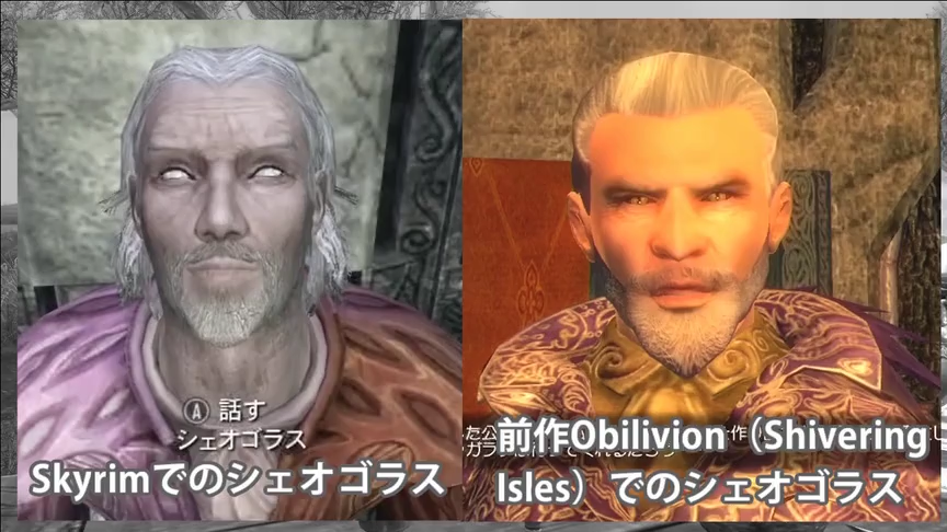 シェオゴラスは初っ端から喋りまくってます。最初の会話は、シェオゴラスが前作Oblivionの主人公である事を示唆する内容となっております。