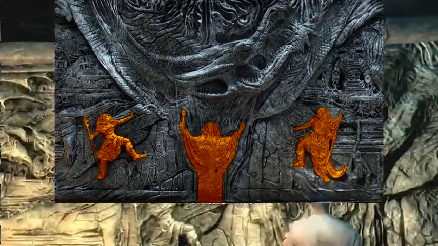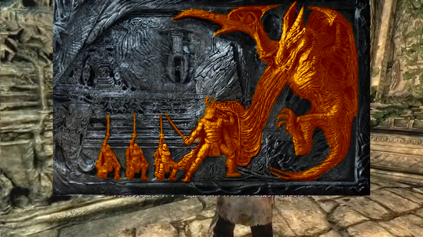 | アルドゥインの壁 | 過去のTESシリーズのレリーフ | 上述のように、投稿前に追加した要素ですので、その他のレリーフについては調べている時間がありませんでした。 TES1〜TES4までの各作品を象徴する記述が見られるようですね。 TES4に関係するオブリビオンゲートは私も分かるのですが、他が未プレイですので詳しく説明できません。 |