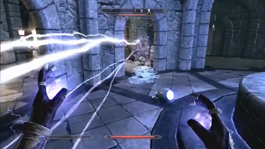 | アルドゥイン襲来 | 戦闘演出 | BGMはベヨネッタより「One Of A Kind」。この曲は本当に大好きで、アルドゥイン戦で使うために温存してきました。 壁画を破ってアルドゥインが出現すると言う演出は、「伝説が現実のものとなる」というイメージからです。 ファイアストーム発動のタイミングに合わせてBGMをクレッシェンドしているのですが、気が付いたでしょうか? いずれにせよ、気に入って頂いたみたいで良かったです。 |