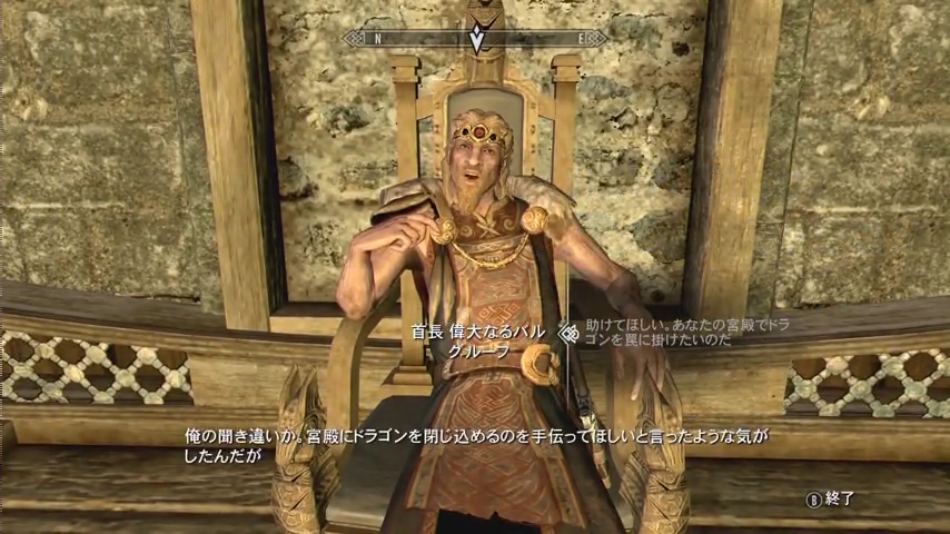 | 講和への道のり | バルグルーフは名君 | 本当に、ホワイトランの首長がこの人で良かったですね。 これがスカルド(ドーンスター首長)とかだったらと思うと… |