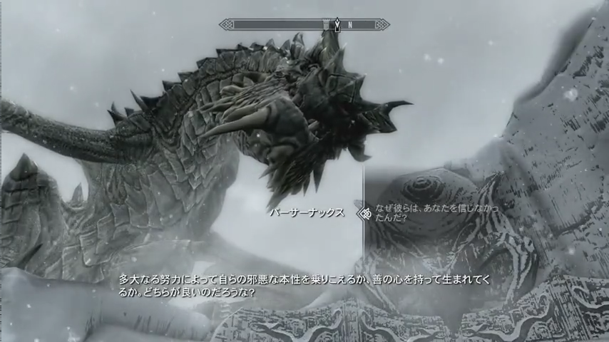 | 講和への道のり | パーサーナックスの台詞 | 更にブレイズとの差が開いてしまうのが、「ブレイズが私を殺せと言うのも無理は無い」と言っちゃうパーサーナックスの悟りの境地。 まあ、ここまで言われて殺そうって気にはちょっとなれないですよね。 同時に、彼の話を聞くと、他のドラゴンが人間を襲うのは本能上どうしようも無いことも分かります。 |