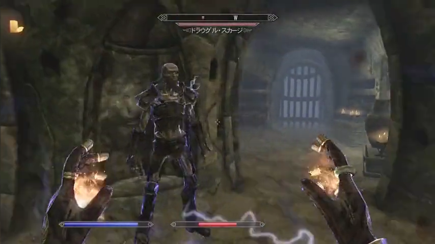 先ほどのデスロードの後、出てきたのはドラウグルスカージ。デスロード同様、体力がありますが、それ以上に魔法を使うタイプが厄介です。
